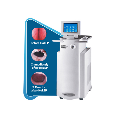 Holmium laser enucleation of the prostate (HoLEP). The laser is used to cut and remove the excess tissue that is blocking the urethra. Another instrument, called a morcellator, is then used to chop the prostate tissue into small pieces that are easily removed.